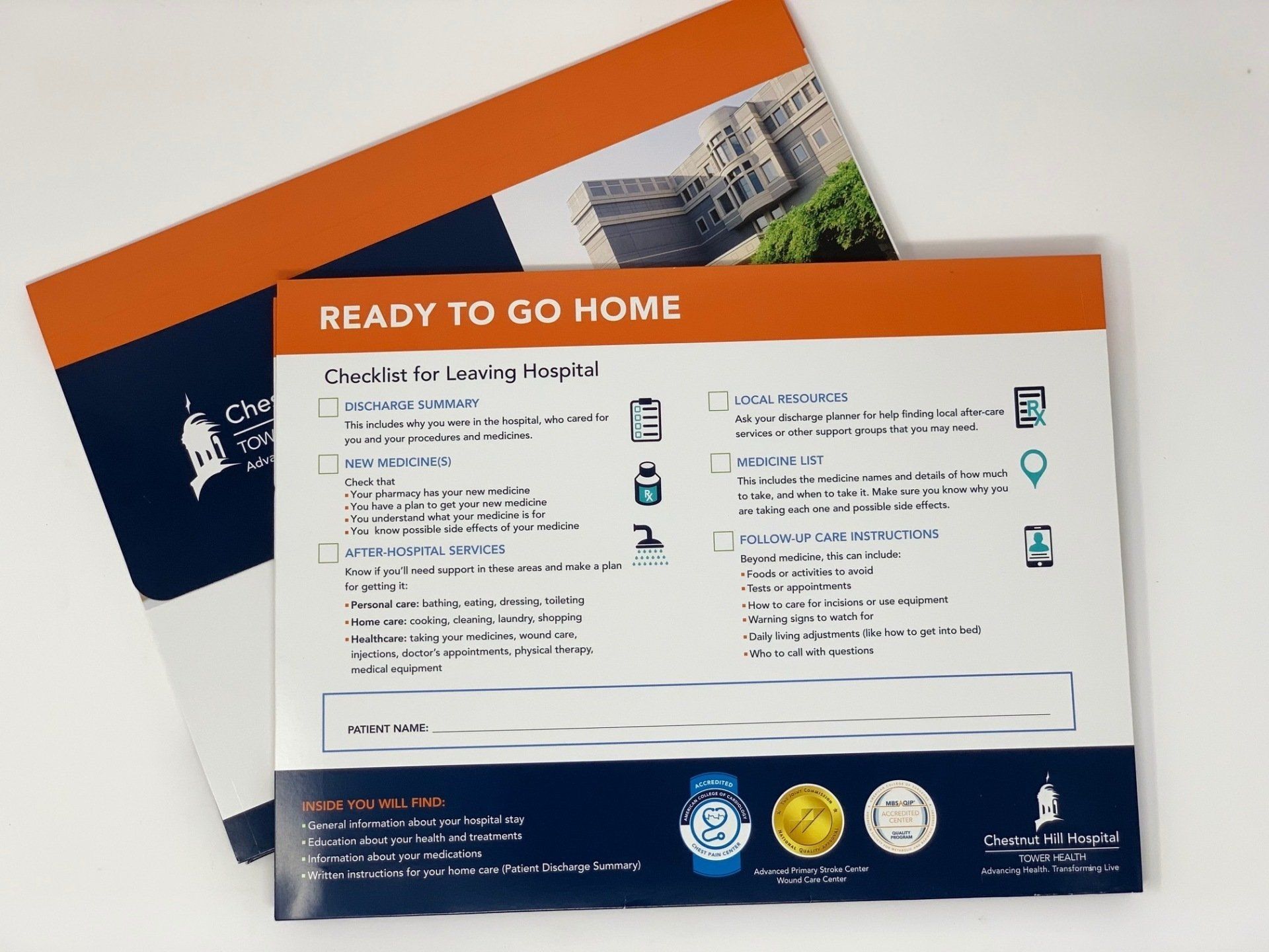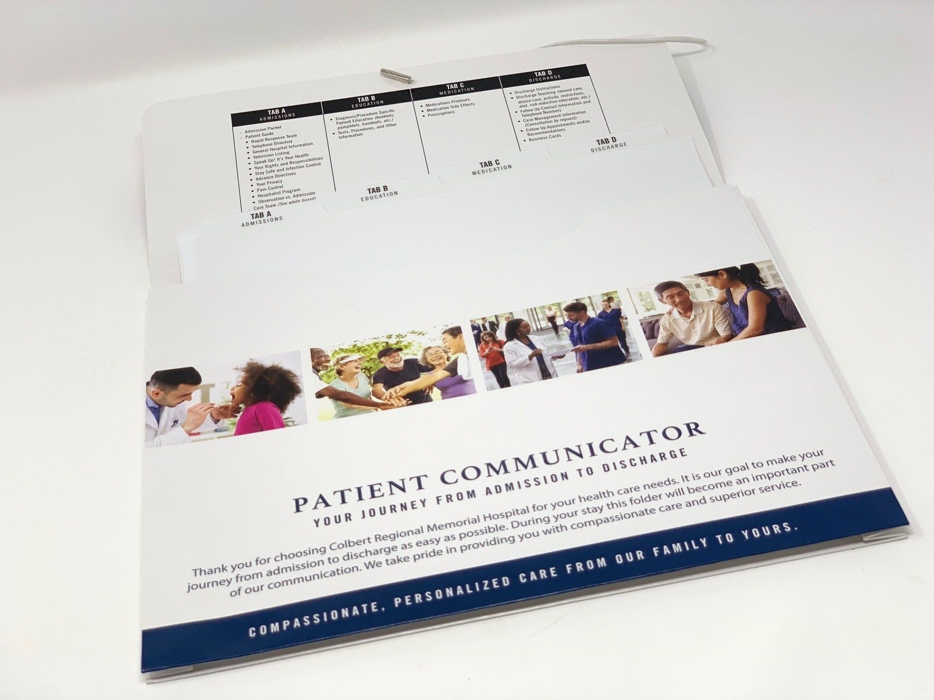 Our patient discharge folders are completely customizable to your hospital color, logo and wording. Our professional design department is ready to assist you and your team.