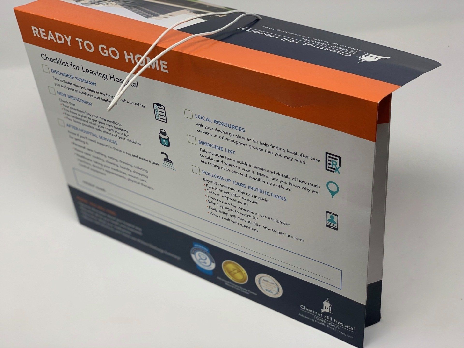 Our patient discharge folders are designed to help improve HCAHPS scores, increase patient satisfaction scores, and help to reduce re-admit rates. After being discharged, it is imperative to all patients that they clearly understand the information received from the hospital as well as further instructions for at-home care. Our patient discharge folders help provide your patients with easy to read instructions, informative medical knowledge, and concise educational material.